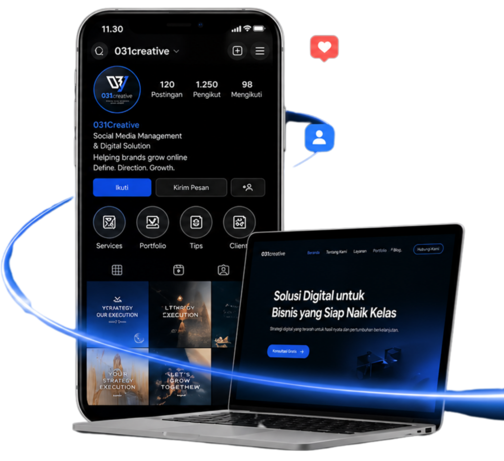 031Creative membantu bisnis Anda tumbuh dengan strategi media sosial yang terarah dan pembuatan website yang modern,cepat dan responsif.